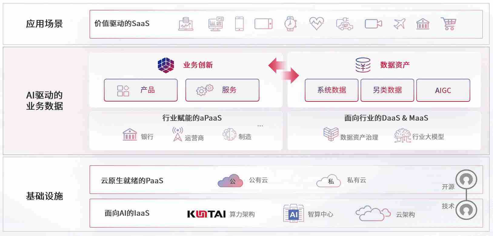 数字时代,,,,围绕企业数字化转型的关键要素,,,z6com尊龙凯时数码开创性的提出数云融合战略和技术体系框架,,着力在云原生、、、、数字原生、、、AI原生和信创产业上架构产品和服务能力,,,为处在不同数字化转型阶段的快消零售、、、、汽车、、金融、、、医疗、、、、政企、、、教育、、、运营商等行业客户提供泛在的敏捷IT能力和融合的数据驱动能力,,,构建跨界融合创新的数字业务场景和新业务模式,,,,助力企业级客户建立面向未来的核心能力和竞争优势,,全面推动社会的数字化、、、智能化转型升级。。。。